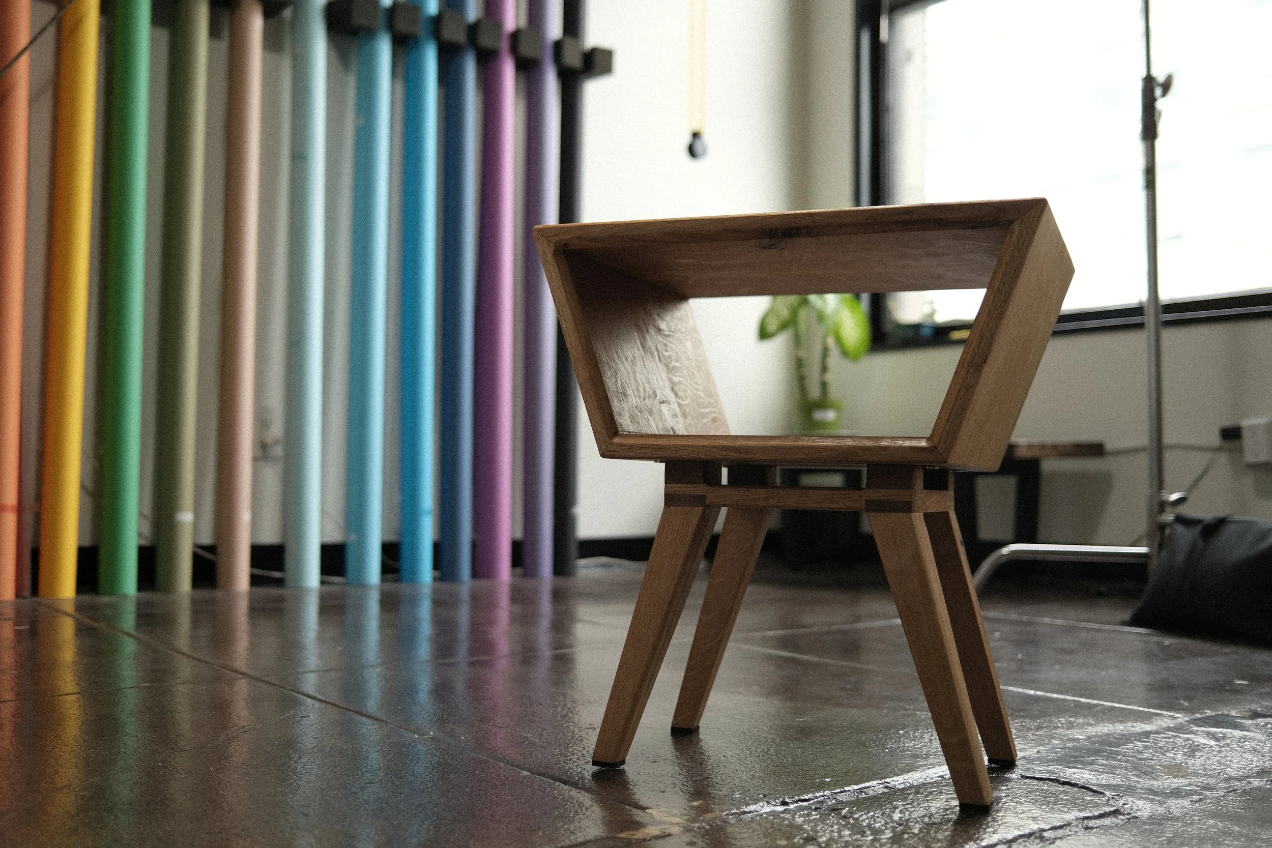 An end table made from solid quarter-sawn white oak.
